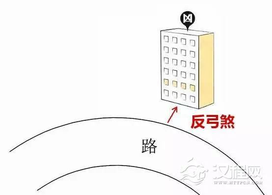 所谓的“反弓煞”就是指住宅前有反弓形的道路,弓对着住宅,弦对着外面,如上图所示,这是一种非常不吉利的风水格局。风水古籍云:住宅前有反弓煞,疾病缠身,财运衰退并易生叛逆子孙,六亲缘薄,不吉利。住在有反弓煞的房子