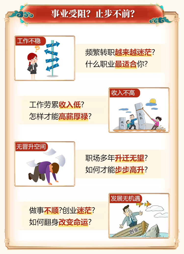 觉得自己能力也不差,但每次升职加薪的都没有我!心里挺失落的!测算以后,我的心里明朗了很多,我知道之后在事业上应该朝着哪些方面去加强了,很感谢这个测算。