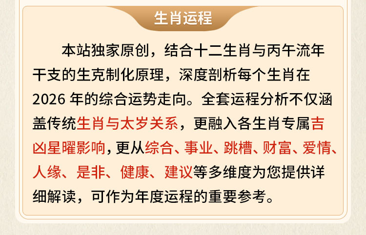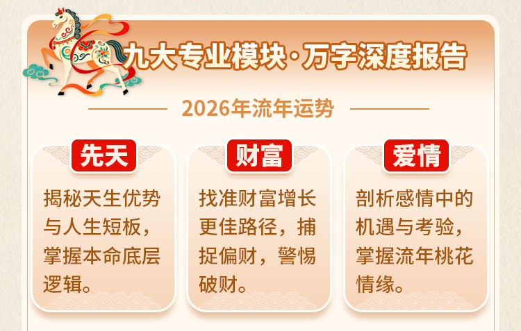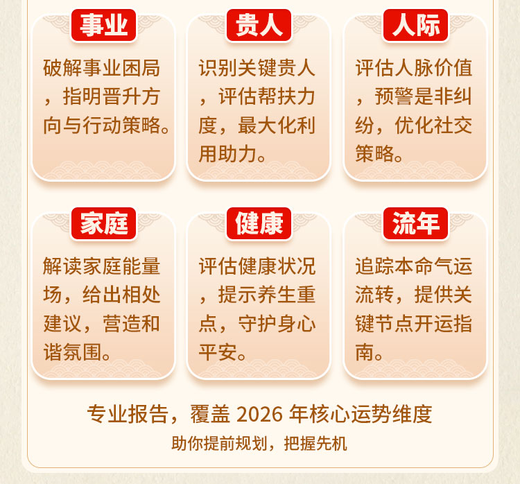 离火之年,吉凶同宫,泰中藏否。然运势之道,不在趋避,而在先机。提前洞察流年走向,方能顺势而为、稳中求进,于火运之年把握先机,以命理为舟,渡流年之变。