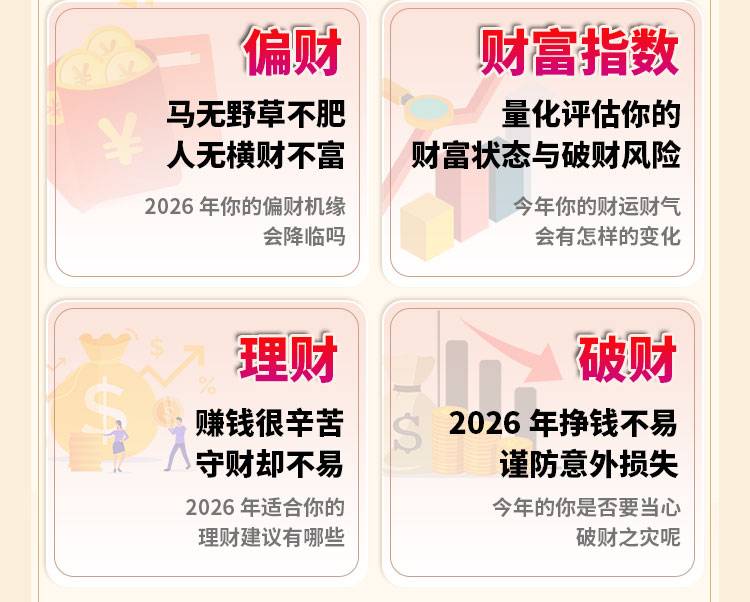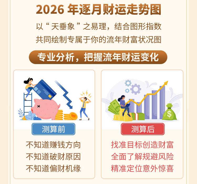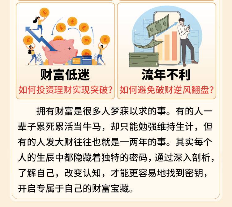 的动态分析,把星象学复杂的理论转化成易懂而专业的解读,为你提供深入而精准的个人财富分析,轻松掌握流年财运的秘密。此外,还为个人
